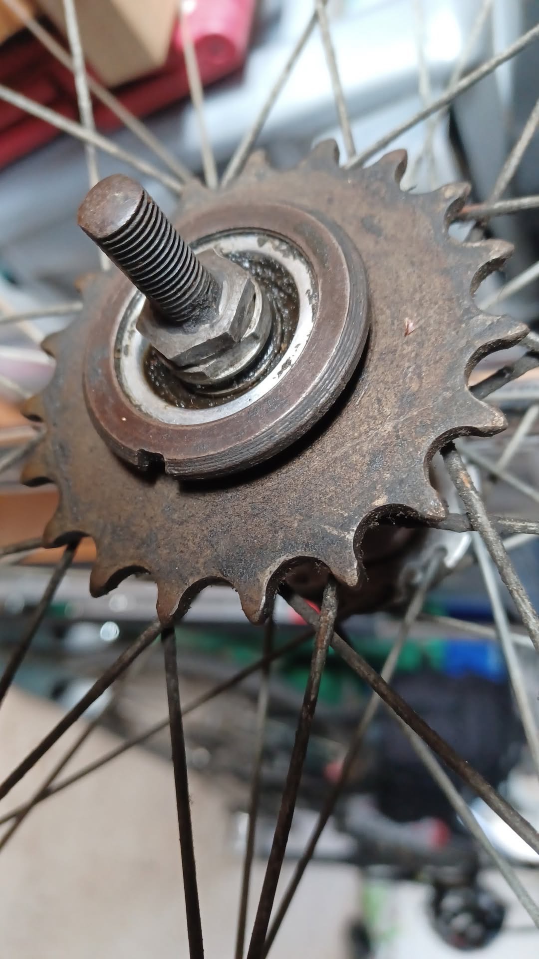 My bike shop was somewhat puzzled by the derailleur- a Campagnolo Gran Sport, as the ‘cogs’ appeared to have no teeth! Can anyone say if this is just very worn or is that how they are (were)? (No – this is how Gran Sport jockey wheels were. This mech is no earlier than late ’53, (updated cage), no later than late ’59 (still incorporates a cable adjuster)